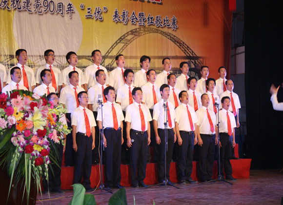朱堅和董事長向活動致辭,他說:廣西新發(fā)展人歡聚一堂,隆重舉行紅歌合唱比賽,慶祝中國共產(chǎn)黨成立90周年,就是要唱響新發(fā)展人的新風(fēng)尚,熱情謳歌我們偉大的黨。他希望全體員工要以紅歌比賽為契機(jī),凝聚人心、凝聚精神、凝聚士氣,用紅色的革命主旋律,營造出健康向上、團(tuán)結(jié)奮進(jìn)的良好氛圍;以更加高昂的斗志,投身到實(shí)現(xiàn)企業(yè)“十二五”目標(biāo)任務(wù)的具體實(shí)踐中去,譜寫企業(yè)發(fā)展的新篇章。