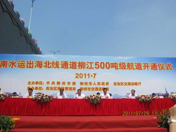 7月29日,由集團直屬單位廣西交通規(guī)劃勘察設計研究院承擔前期工作及勘察設計的柳江航道整治工程在柳州市南車渡碼頭舉行航道工程開通儀式,自治區(qū)交通運輸廳潘魏廳長、周一農(nóng)副廳長及柳州市政府鄭俊康市長、張永剛副市長等領導出席了開通儀式。