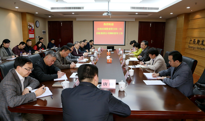 2月14日,自治區(qū)國資委主任、黨委書記管躍慶,企改處處長何載福,財評處處長曹玲,辦公室(黨委辦公室)主任劉獻偉,分配處副處長、調研員羅玉潔,監(jiān)事會監(jiān)事唐敏蒞臨集團公司調研指導工作。集團公司領導班子以及各部門負責人陪同。