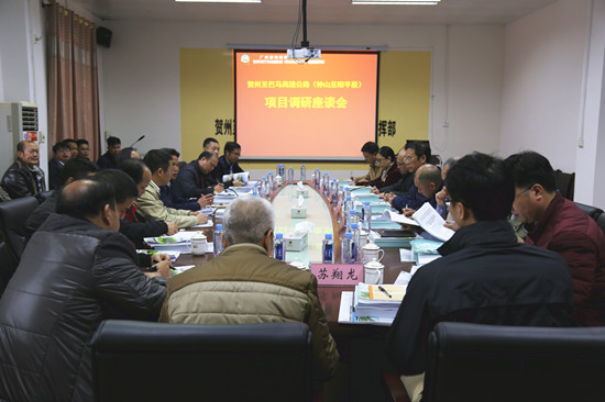 下午1時(shí),調(diào)研組在指揮部會(huì)議室與各參建單位代表進(jìn)行座談,觀看了賀州至巴馬高速公路項(xiàng)目建設(shè)情況等相關(guān)宣傳視頻,并聽取了項(xiàng)目建設(shè)情況的匯報(bào)。
