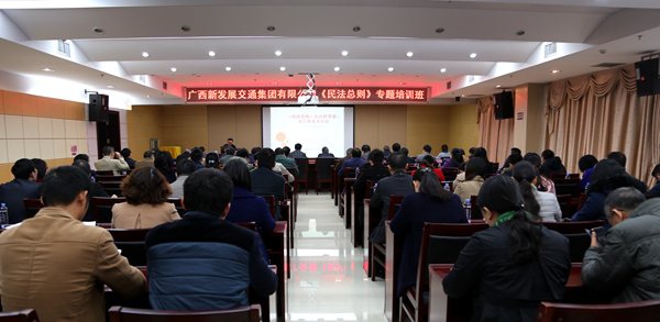 為準(zhǔn)確理解與適用《民法總則》,樹立干部職工依法治企、合規(guī)經(jīng)營的工作理念。12月22日上午,集團(tuán)公司舉辦了《民法總則》專題培訓(xùn)。集團(tuán)公司領(lǐng)導(dǎo)翁科、鄧遠(yuǎn)志,總部各部門、直屬各企業(yè)分管法律事務(wù)和市場經(jīng)營的負(fù)責(zé)人以及法務(wù)管理、合同管理和市場經(jīng)營職能部門相關(guān)人員共160余人參加了此次培訓(xùn)。