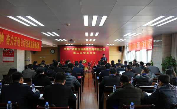 會議在莊嚴(yán)的國歌聲中開幕。會上,集團(tuán)黨委副書記張友坐宣讀了集團(tuán)公司關(guān)于同意公司召開第二次黨員大會的批復(fù)等有關(guān)文件。新恒通公司黨總支書記賴水平代表第一屆總支部委員會向大會作了題為《適應(yīng)新形勢,抓住機(jī)遇,推動公司事業(yè)不斷實(shí)現(xiàn)新發(fā)展》的工作報告。