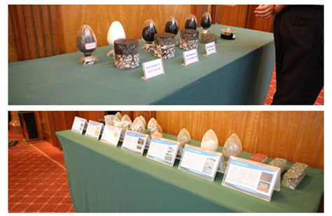圖為集團公司領(lǐng)導(dǎo)、各專家參觀交科院路面新型材料展及會場剪影