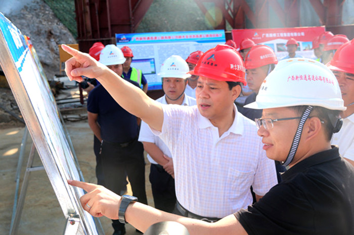 9月21日上午,廣西壯族自治區(qū)黨委常委、政法委書(shū)記黃世勇到融河高速調(diào)研,河池市市長(zhǎng)唐云舒,政法委書(shū)記黃光華參加調(diào)研。