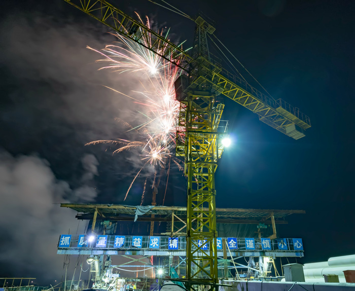 2014年10月14日,項(xiàng)目開(kāi)始搭設(shè)施工棧橋,正式開(kāi)始攻堅(jiān)戰(zhàn);2018年1月26日,2#主橋順利合龍,合龍精度達(dá)到毫米級(jí)。