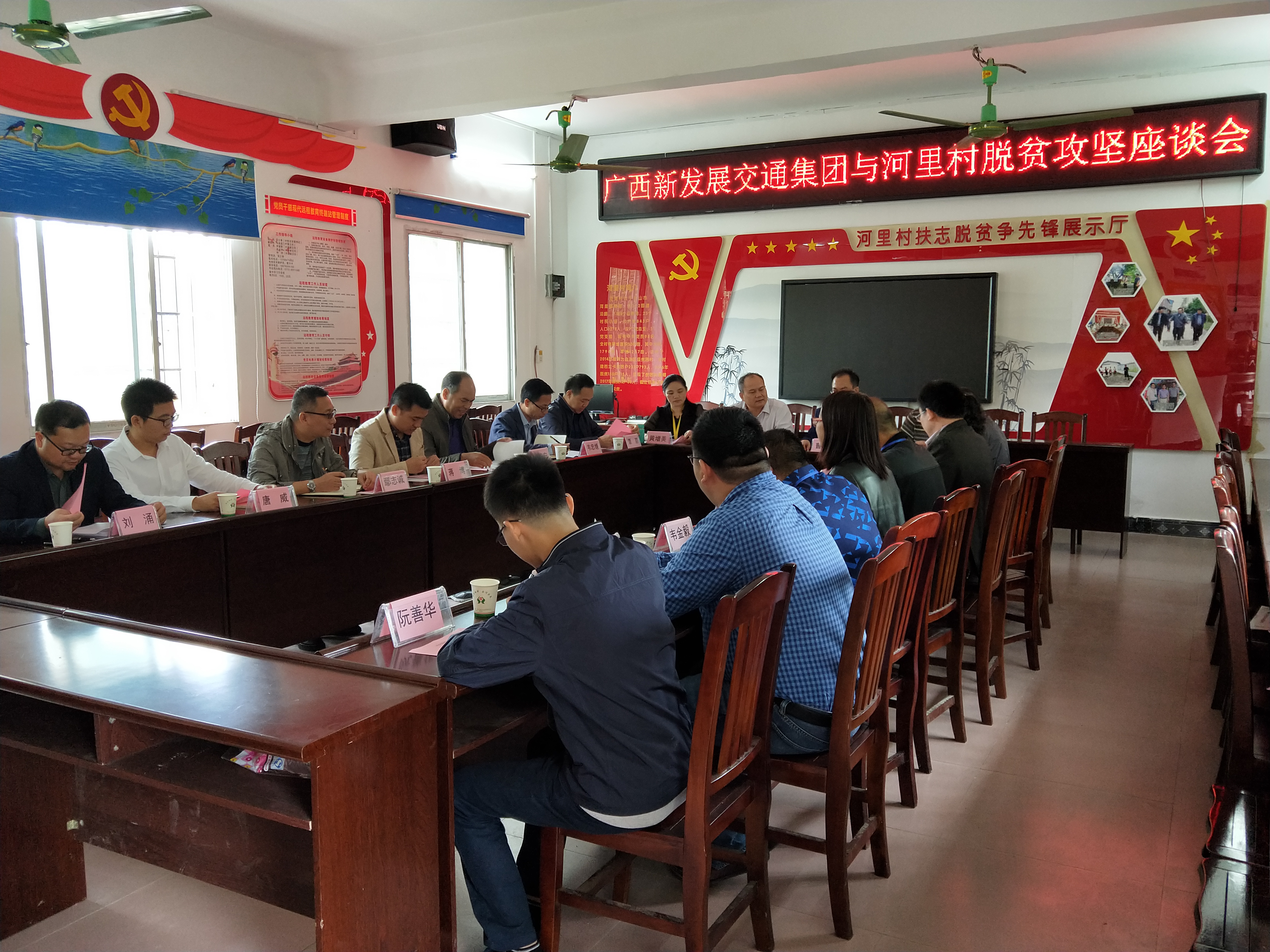 與當?shù)卣賳T、扶貧工作隊員、村民代表舉行座談會,商討河里村扶貧工作問題。
