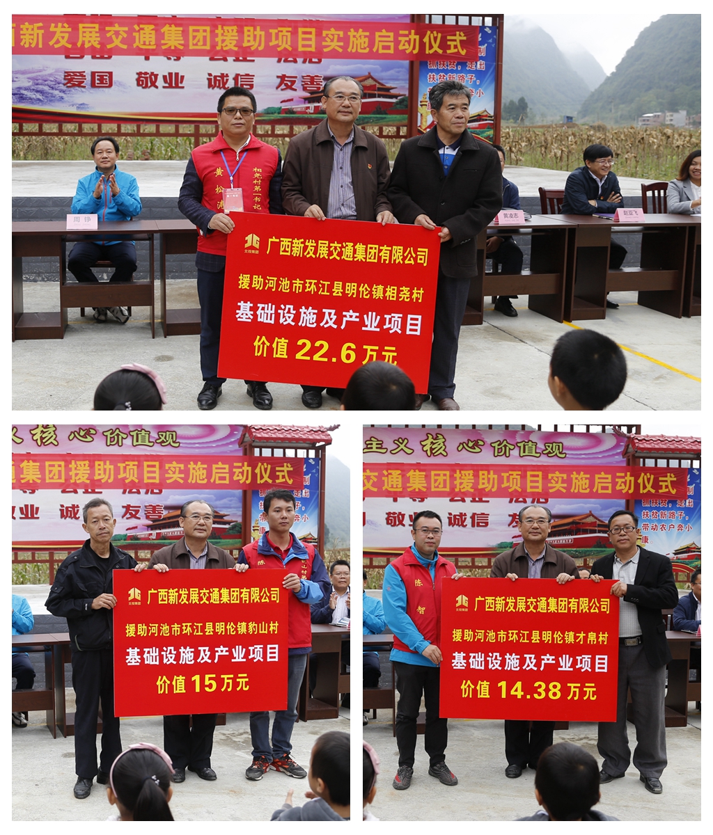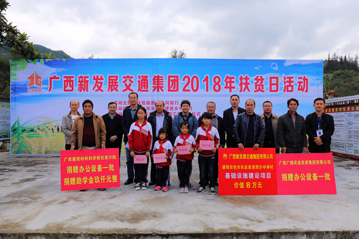 2018年10月17日是我國第5個扶貧日,按照自治區(qū)統(tǒng)一部署,新發(fā)展交通集團以“扶貧助困 共同前行”為主題,深入環(huán)江縣、樂業(yè)縣、合山市5個扶貧聯(lián)系村開展走訪慰問、基礎(chǔ)設施建設及產(chǎn)業(yè)項目援助、金秋助學、志愿聯(lián)建等活動。