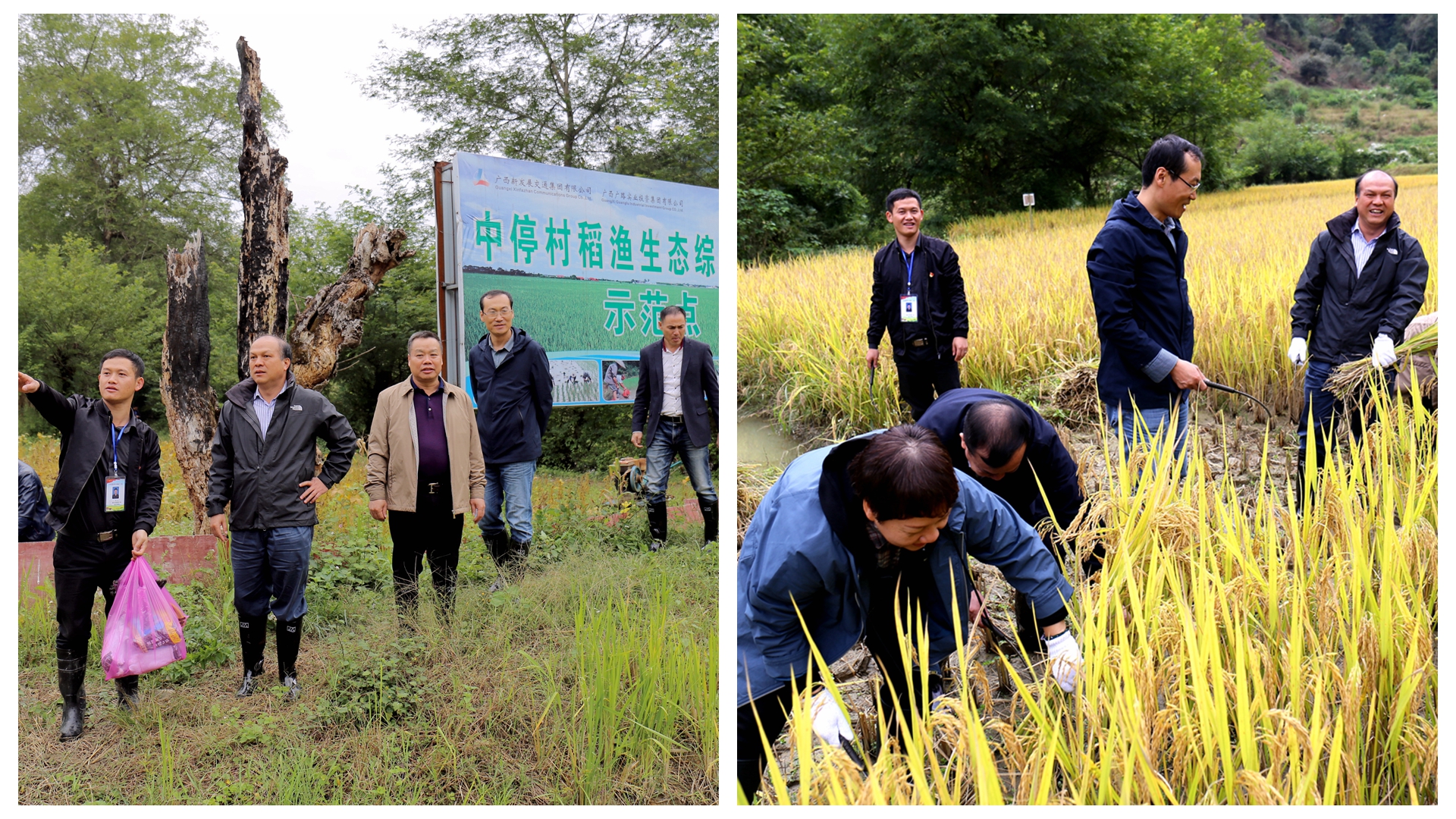 實地察看集團公司援助建設的中停村有機米產(chǎn)業(yè)(核心)示范區(qū),同村民一起收割稻谷。