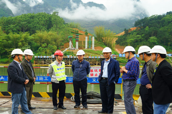 會后,李定倫率隊(duì)到都巴路控制性工程紅水河特大橋施工現(xiàn)場督導(dǎo)安全生產(chǎn)工作。