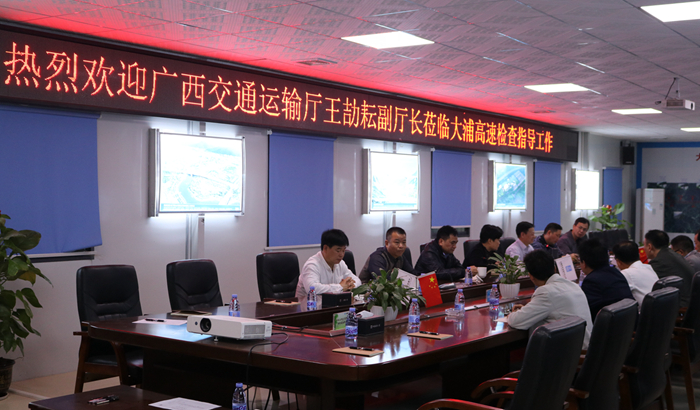 12月23日下午,區(qū)交通運(yùn)輸廳副廳長王劼耘一行到大塘至浦北高速公路項(xiàng)目開展項(xiàng)目建設(shè)檢查指導(dǎo)。自治區(qū)交通運(yùn)輸廳建設(shè)管理處副處長余建國、北投集團(tuán)總工程師覃炳賢、欽州市交通局局長鄒滿麗、靈山縣副縣長陸漢川、新發(fā)展集團(tuán)總經(jīng)理藍(lán)日彥、大浦公司副總經(jīng)理姚雷、中建八局南方公司總經(jīng)理助理龍永強(qiáng)等陪同。